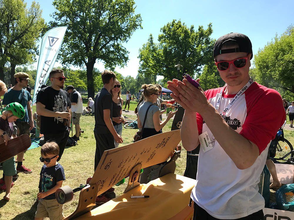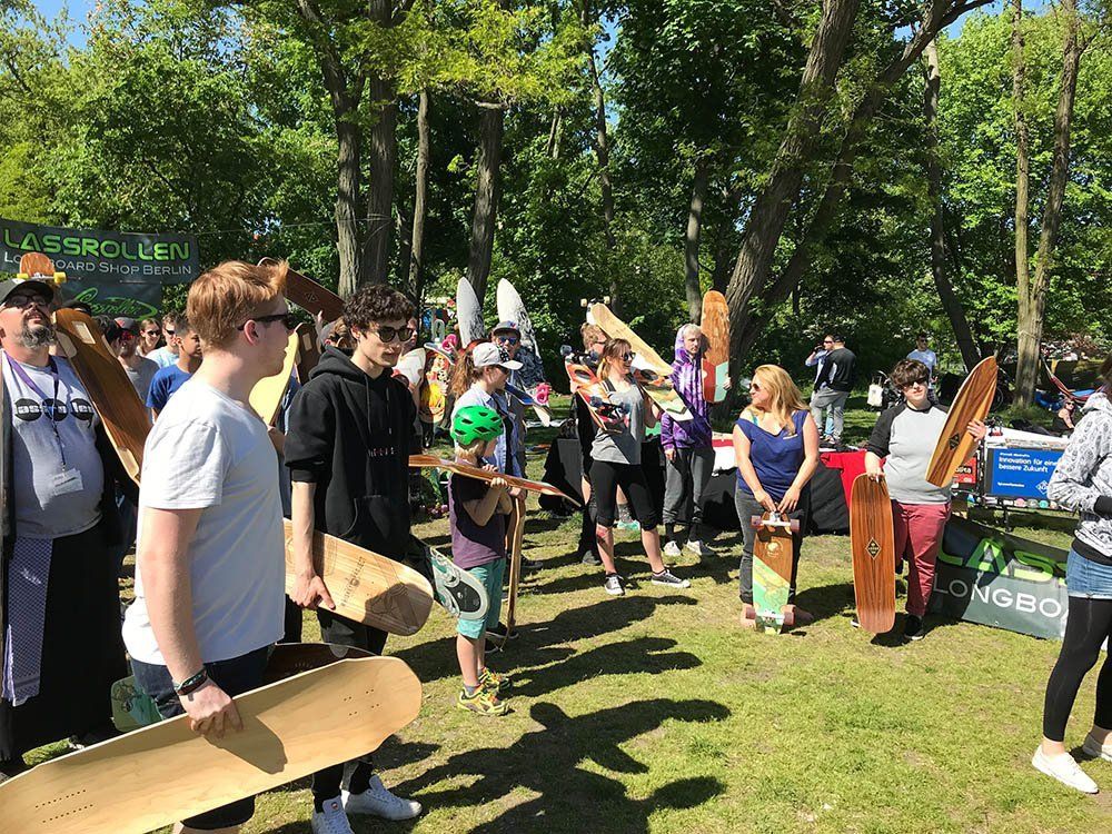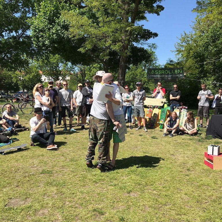 Die Anspannung war sehr groß. Unsere Glücksfeen haben sich aus dem Publikum bereitgestellt, als wir ab 13.00 mir der Preisvergabe starteten. Jeder wurde gefeiert wie ein Sieger des Tages. Das Tauschen untereinander lief spontan, sodass alle ihr neues, lang erwartetes Deck auf der Friedrichshainer Wiese bei entspannten Musik, hausgemachten Bratwursten und Schrippen sowie Paulaner Zwickel feiern konnten.